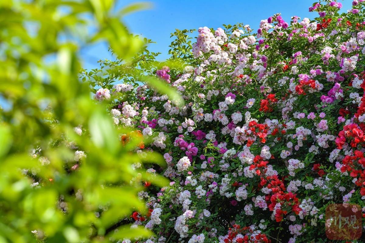 4月15日,绵阳经开区红桥路与红塔街十字路口,蔷薇花散发着浓郁芳香,引得游人驻足拍摄。C视觉摄影师 王勇 摄